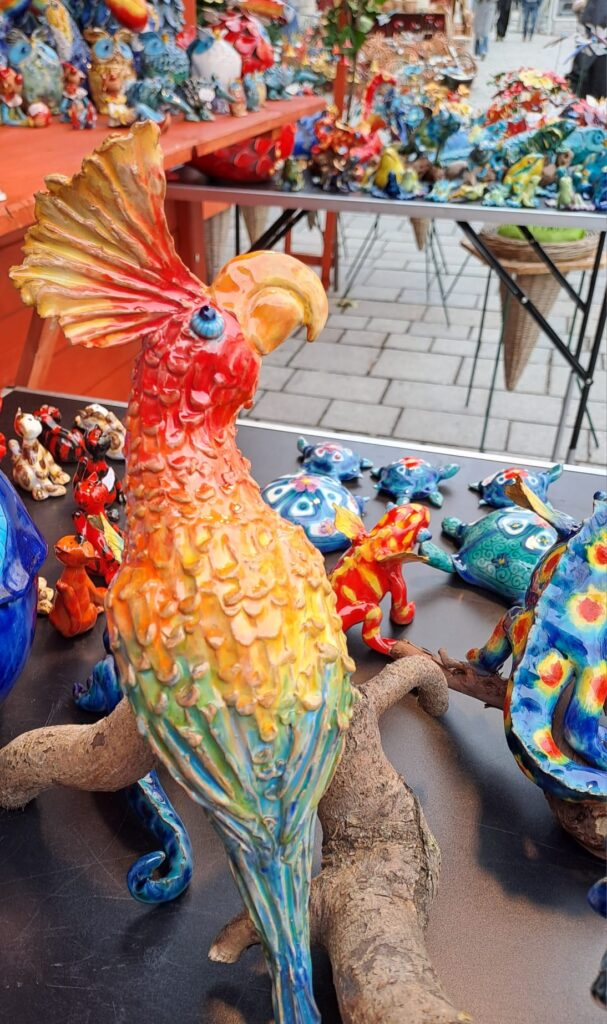 Unser Marktmitglied Eva Szécsi ist eine Künstlerin, was man an den ausgestellten Keramik-Unikaten deutlich erkennen kann. An ihrem Stand finden Sie alles – vom kleinen Geschenk, bis hin zur überaus anspruchsvollen, voluminösen Keramikskulptur.